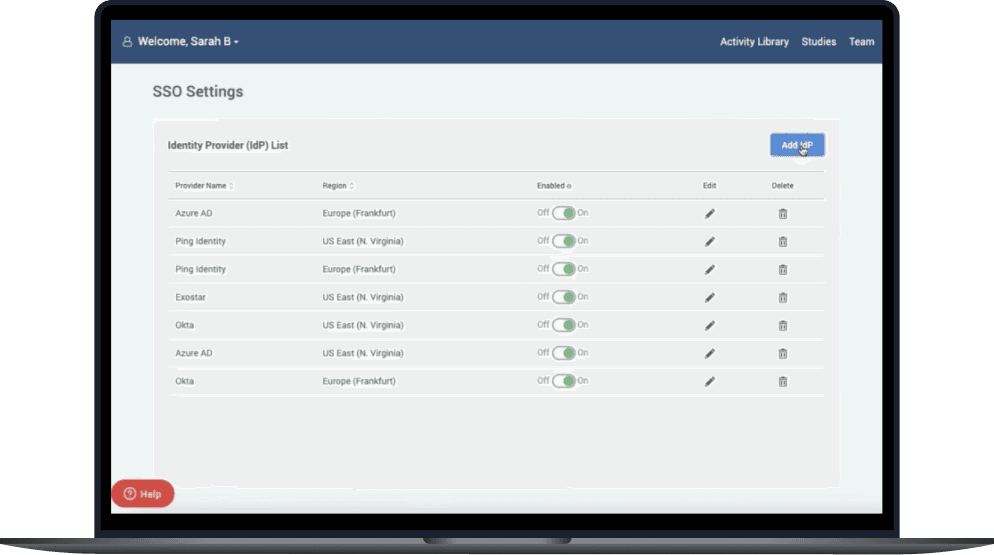 Platform users and study admins can use their existing login, eliminating the need for additional credentials